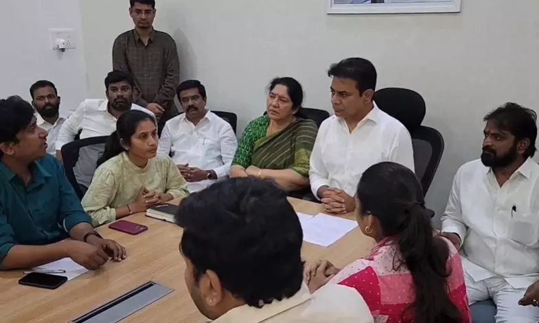 Hyderabad: The ongoing protests by aspirants preparing for the Telangana Public Service Commission (TGPSC) Group 1 Mains exams took a significant turn, as several candidates met with Bharat Rashtra Samithi (BRS) Working President and former state minister KT Rama Rao at Telangana Bhavan on Thursday, who assured them of help. The meeting comes in the wake of growing unrest among aspirants, who are demanding the postponement of the exams scheduled for October 21 to 27.