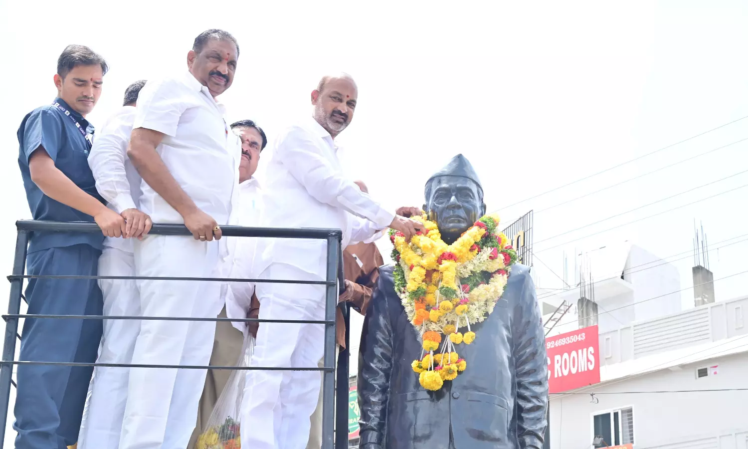 Sanjay Kumar hailed Konda Laxman Bapuji as the flag bearer of the Telangana movement and a symbol of the state’s self-respect. He praised Bapuji as an inspiration to the downtrodden and a mirror of honesty, recalling that he sacrificed his own house, Jala Drushyam, to serve as the first office of the Telangana Rashtra Samithi (TRS).