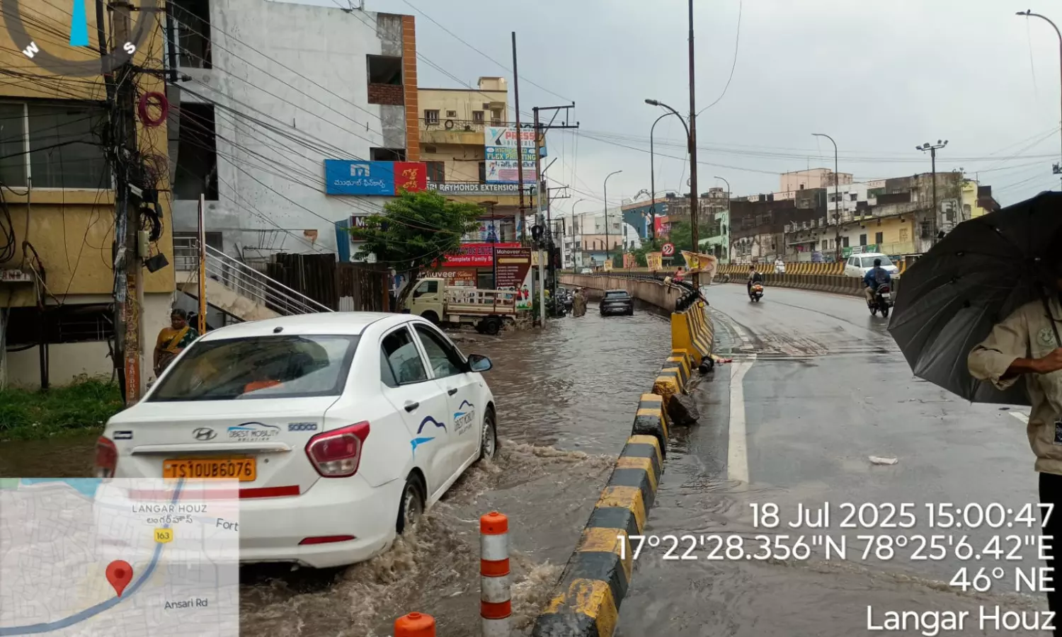 Waterlogging reported across multiple areas in Hyderabad. Traffic police are issuing real-time updates, urging citizens to stay cautious and avoid unnecessary travel.