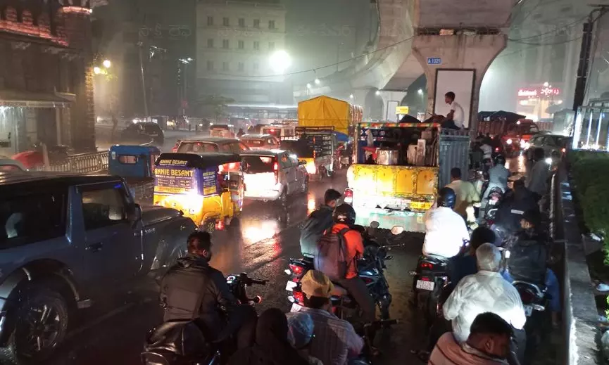 Traffic slowed to a crawl in several locations, including Lakdikapul, Bible House, NMDC and Shah Rasoi Hotel, where police personnel and DRF teams, together managed the situation.
