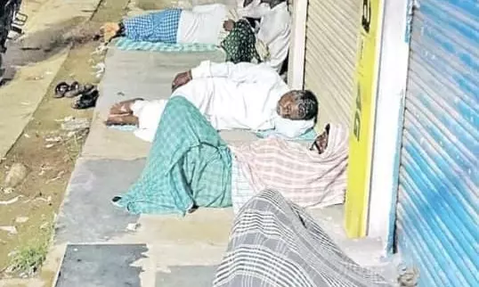 Warangal: A large number of farmers, post availing waivers in the first and second phases, were seen forming long queues in front of banks for renewal of their loans in several mandals of erstwhile Warangal district on Tuesday. Some farmers were even seen sleeping in front of banks to hold their places in the queues.