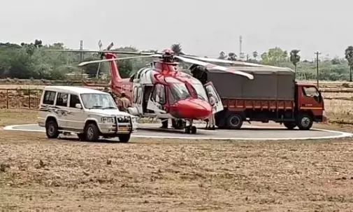 Kodada: A helicopter carrying Telangana Minister Uttam Kumar Reddy made an emergency landing in Kodada on Tuesday due to adverse weather conditions. The minister was en route from Hyderabad to inspect various lift irrigation projects in the Huzurnagar constituency.