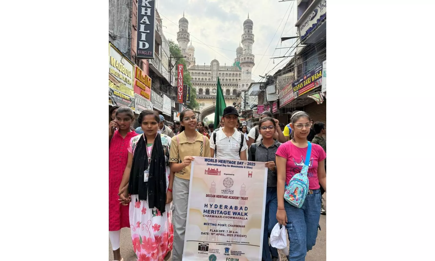 Hyderabad: On the occasion of World Heritage Day, a heritage walk was organized on Friday morning from Charminar to Chowmahalla Palace in old city here.