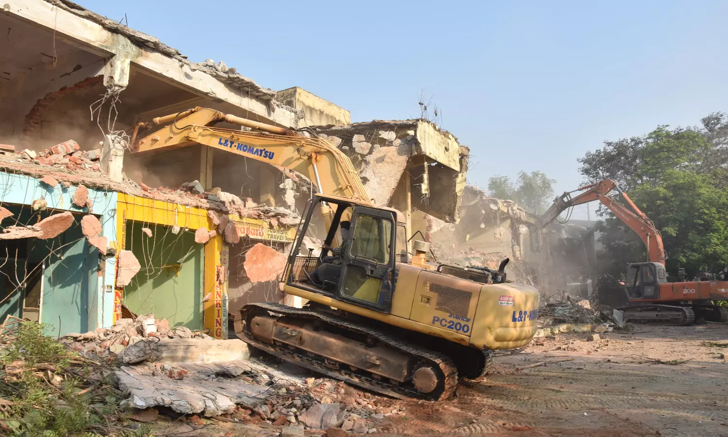 Hyderabad: The HMDA on Wednesday demolished the old court building of Rangareddy district, following a High Court order. Business owners operating in the complex had challenged the eviction, but the court ruled in favour of demolition, citing the building’s deteriorating condition and safety risks.