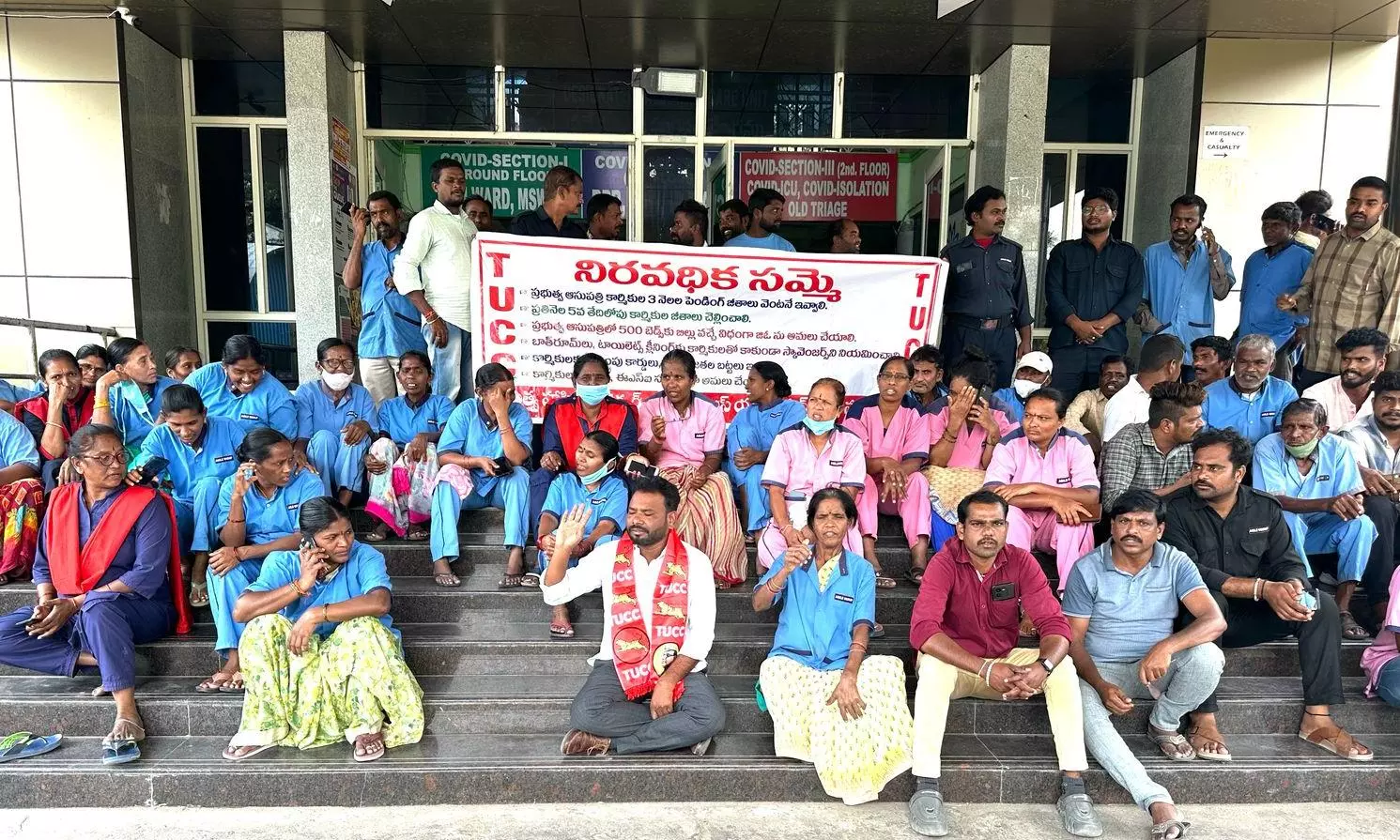 The union has demanded: Immediate release of three months’ pending salaries, appointment of dedicated sanitation workers for hospital toilets, issuance of ID cards and uniforms for all staff and implementation of Provident Fund (PF) and Employee State Insurance (ESI) benefits.