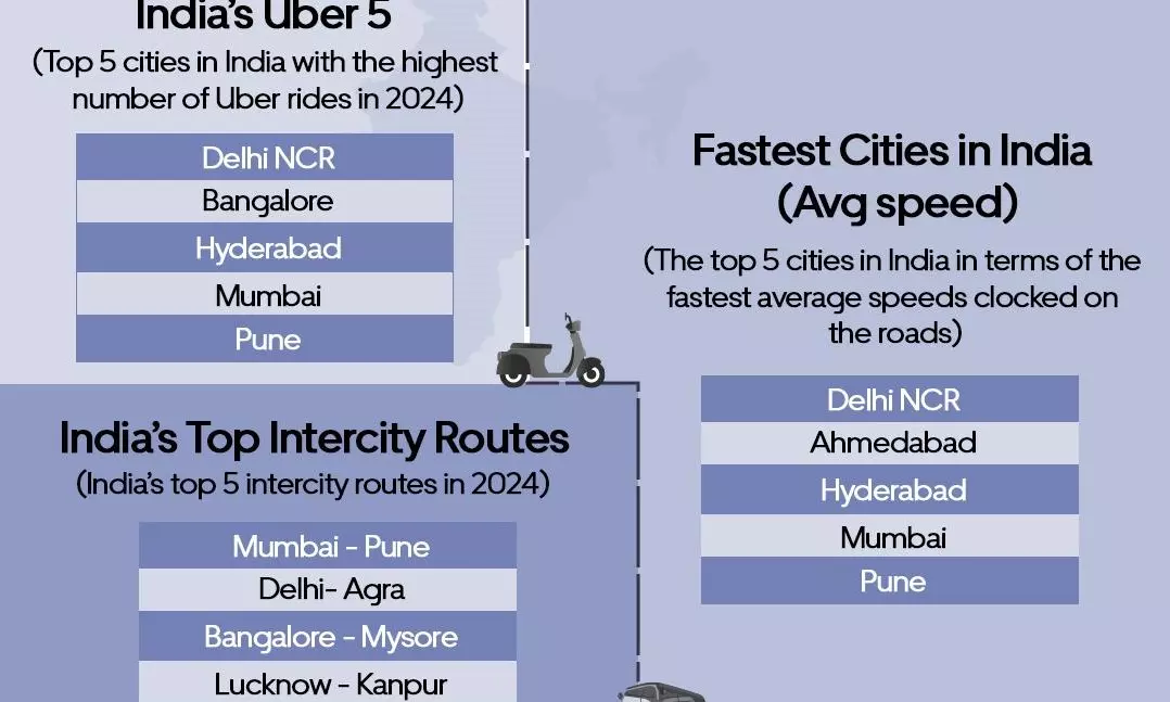 Hyderabad: In 2024, Indians travelled more than ever before, setting new benchmarks and continually reshaping urban mobility. Hyderabad figured in the top six cities that had the highest number of Uber rides along with Delhi NCR, Bengaluru, Mumbai, Pune and Kolkata. It also figured in the top five fastest cities.