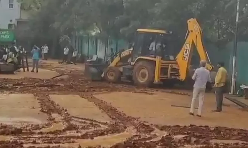 Hyderabad: HYDRAA conducted demolition drives at Bhageerathamma tank in Khajaguda to remove illegal encroachments within the designated buffer zone.