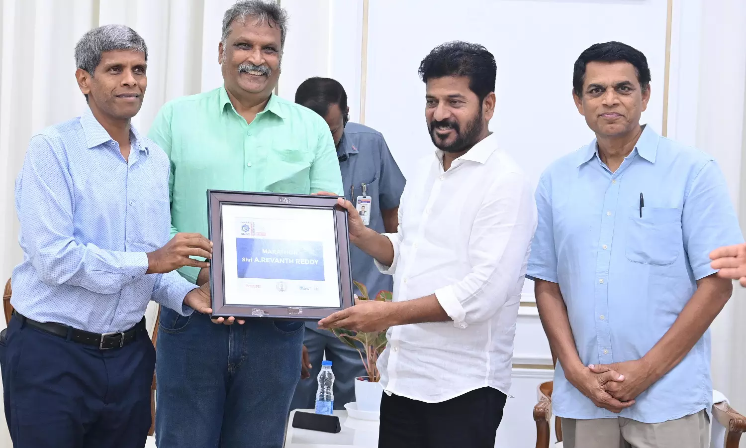 In a meeting to announce the World Athletics label for the NMDC Hyderabad Marathon, Chief Minister Revanth Reddy said, "I would like to congratulate the Hyderabad Runners Society for getting Hyderabad city on the World Athletics calendar through the NMDC Hyderabad Marathon by getting World Athletics Label”.