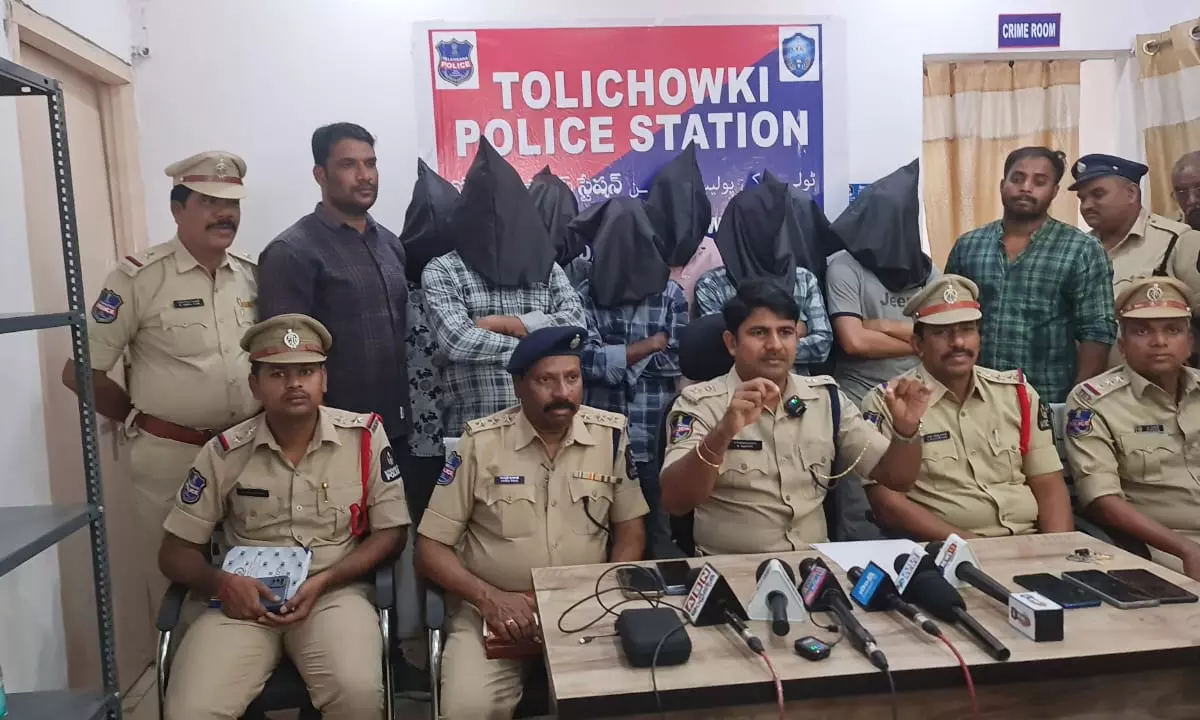 Hyderabad: The Tolichowki police on Tuesday arrested four persons in charges of robbing cash from two persons, threatening them that they were from the police department at Hakeempet crossroads on Sunday night.