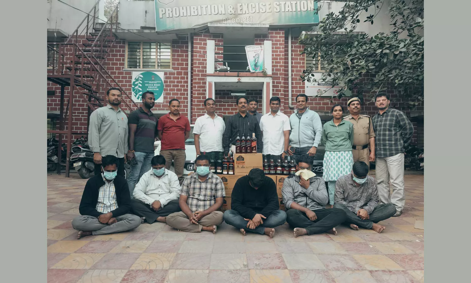 The arrested accused have been identified as Tarun Verma, Ravinder Goud, K. Surender Reddy, Kranti, Nagaraju and Venkie. Director of the excise enforcement, V. B. Kamalasan Reddy lauded the efforts of the STF teams.