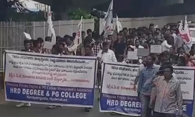 Hyderabad: Students protest demanding release of fee reimbursement dues