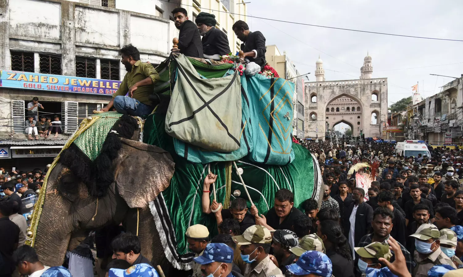 The procession began at Bibi-ka-Alam, Dabeerpura, and passed through Yakutpura, Alija Kotla, Charminar, Purani Haveli, and Darulshifa, and concluded at Masjid-e-Ilahi in Chaderghat around 8 pm.
