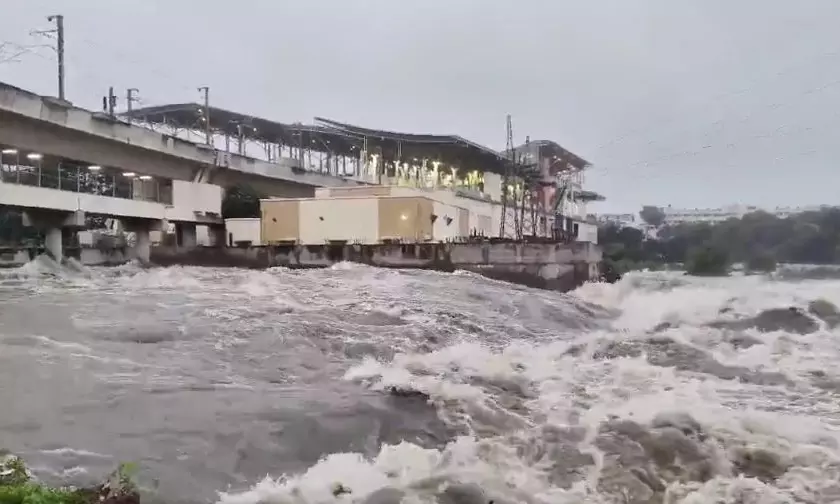 The water level in Musi River rose after the gates of Hyderabad's twin reservoirs -- Himayatsagar and Osmansagar -- were raised following the heavy rains.