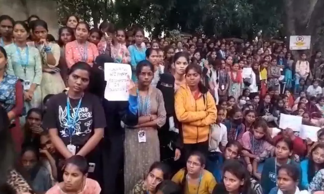 Hyderabad: Students of Veeranari Chakali Ilamma Women’s University, formerly Osmania University College for Women, Koti, initiated a protest demanding the passage of the University Bill in the upcoming Assembly session and securing University Grants Commission (UGC) approval for the institution by December end.