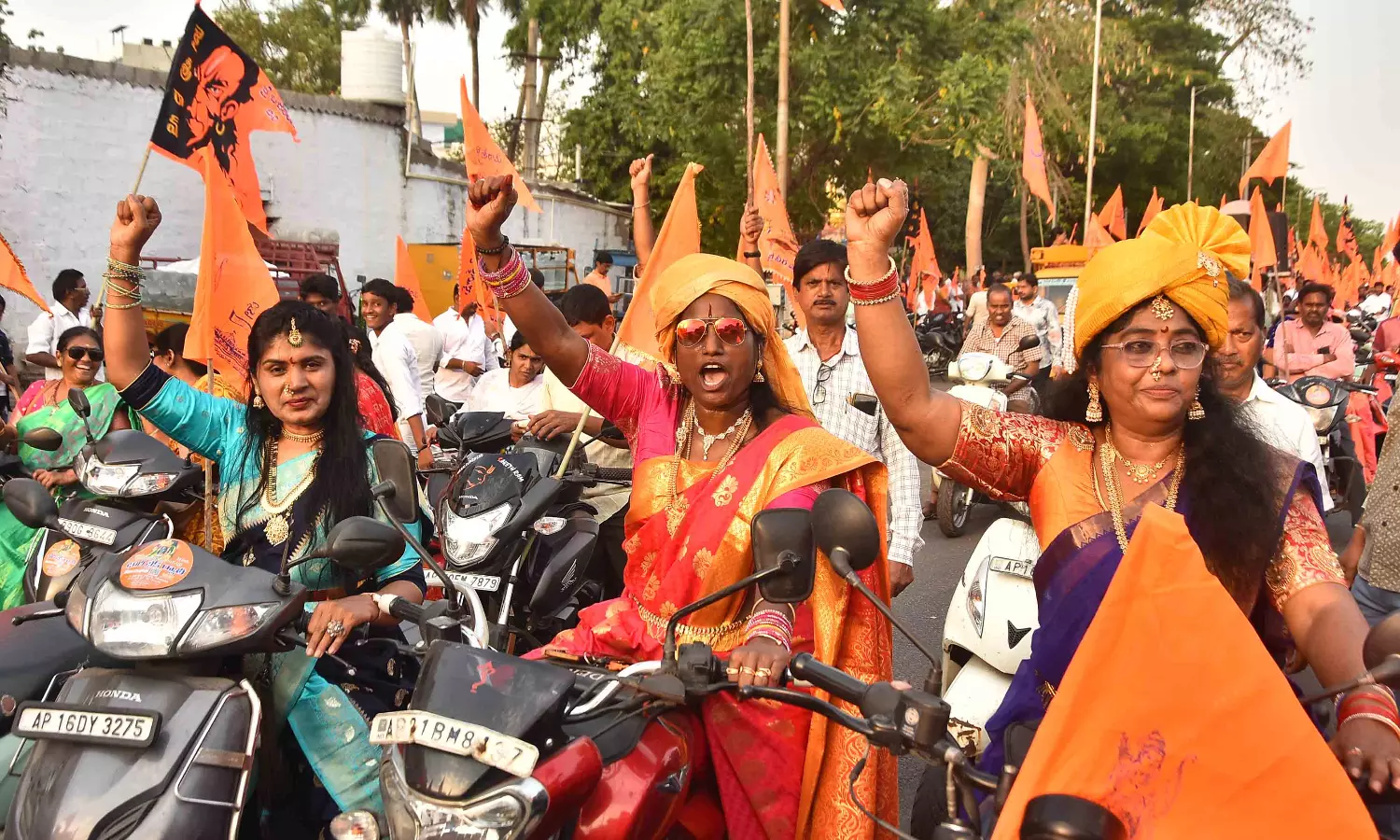 BJP MLA Raja Singh led another procession from Mangalhat’s Akashpuri Hanuman temple, after conducting a special yagnam. The procession featured the statues of Chhatrapati Shivaji and his son Sambaji Maharaj.
