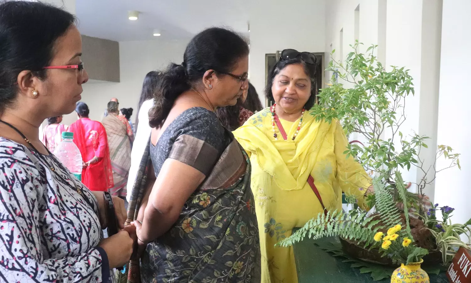 The event also included an Ikebana exhibition on rocks, presented by the Hyderabad Chapter of the Ohara School of Ikebana. Ikebana, the Japanese art of flower arrangement, was creatively displayed using natural rocks, combining nature and design to reflect harmony and balance.