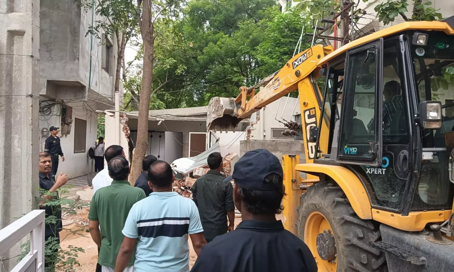 The action followed a complaint from the Yadadri Residential Welfare Association, which alleged that the SAGE School, owned by Jashwanth Reddy, had illegally occupied the road connecting the colony to Warangal Highway and blocked access with unauthorised structures.