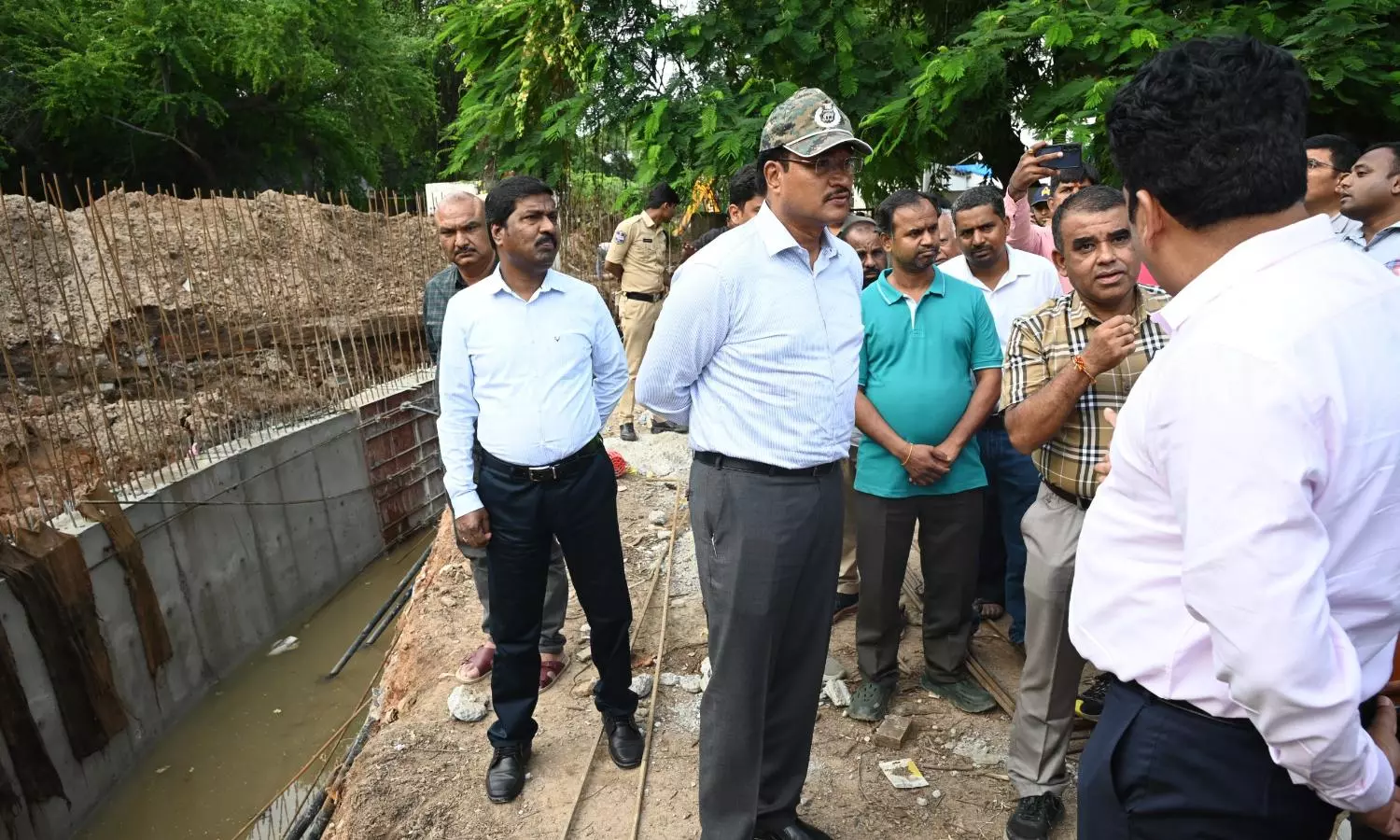 Hyderabad: HYDRAA commissioner A.V. Ranganath inspected construction work on a retaining wall on the Picket nala at Begumpet’s Patny Colony on Sunday, along with Secunderabad Cantonment Board CEO Madhukar Naik.