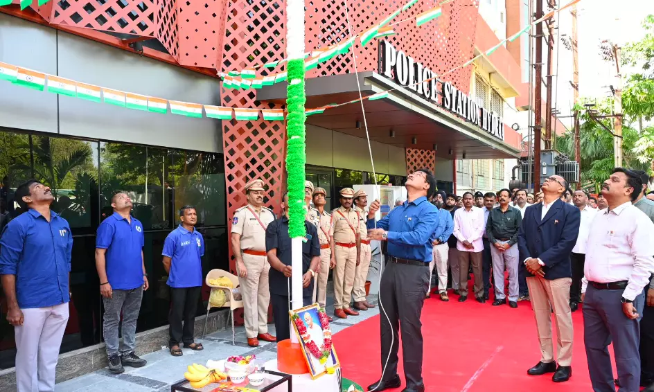 Hyderabad:HYDRAA commissioner A. V. Ranganath unfurled the Indian Flag at the HYDRAA police station on Monday, marking Telangana Formation Day.