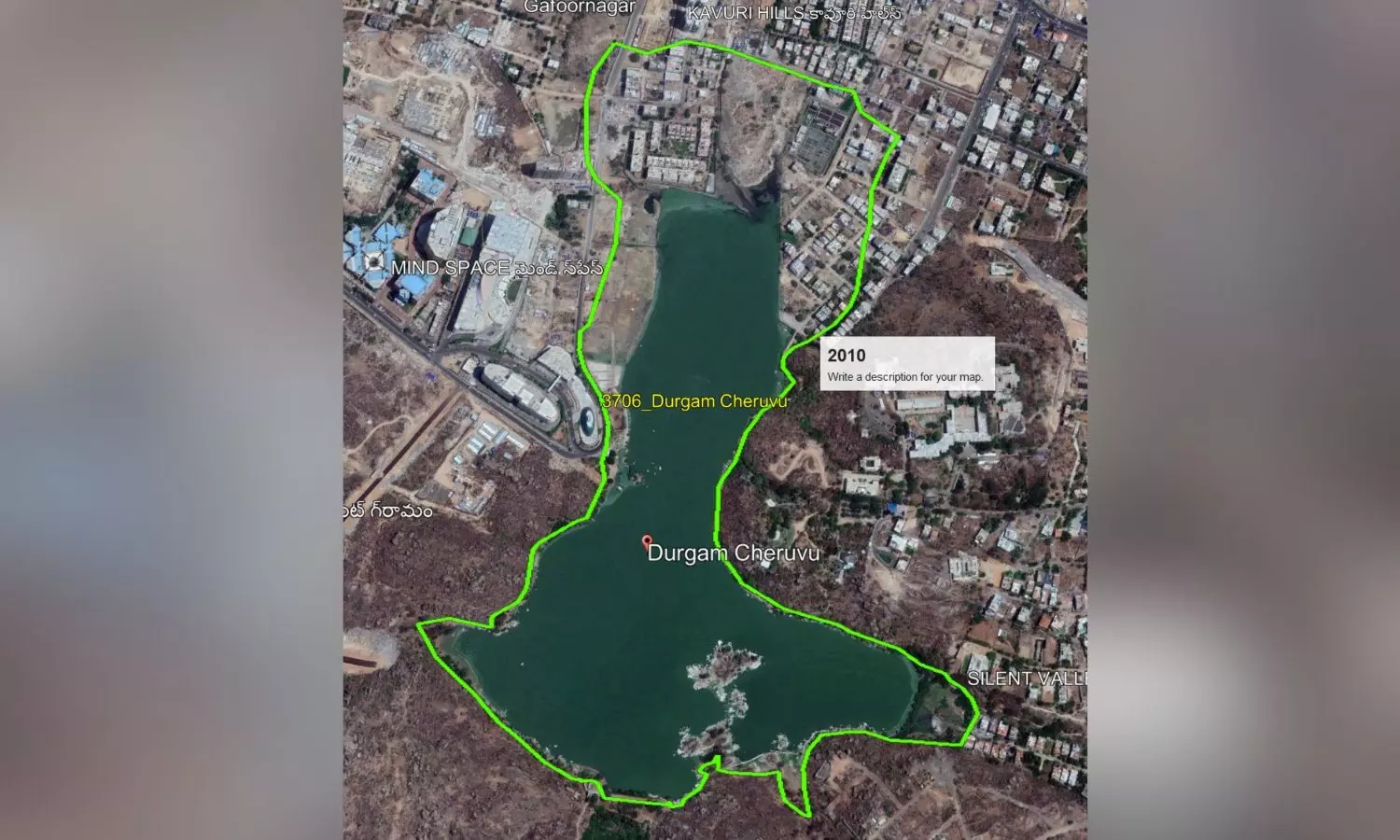Once a drinking water source for the Golconda royals, Durgam Cheruvu has shrunk from 160 acres to about 116 acres due to decades of encroachment. Satellite imagery from the National Remote Sensing Centre shows a “systematic pattern of land grabbing”, with sewage inflows and dumping worsening pollution.