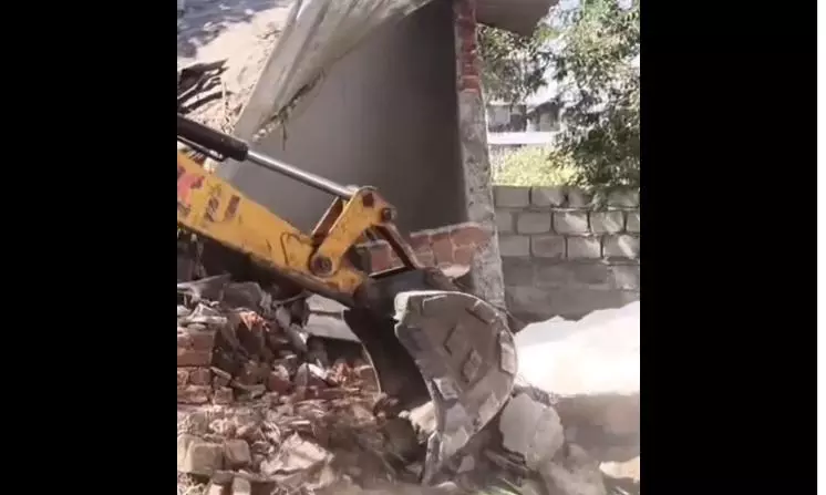 Several illegal structures were constructed by some encroachers along the road no.4 in Arvind enclave