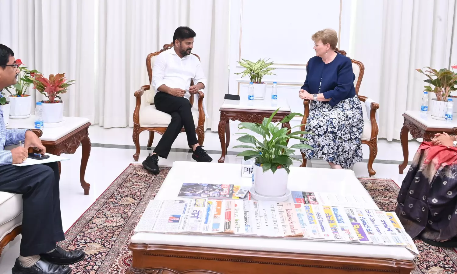 Later, AP, Telangana and Karnataka UNICEF field office chief, Dr. Zelalem B. Taffesse met Revanth Reddy. Earlier, Revanth Reddy unveiled Telangana Sports Authority logo in the presence of Revenue Minister Ponguleti Srinivas Reddy and others.