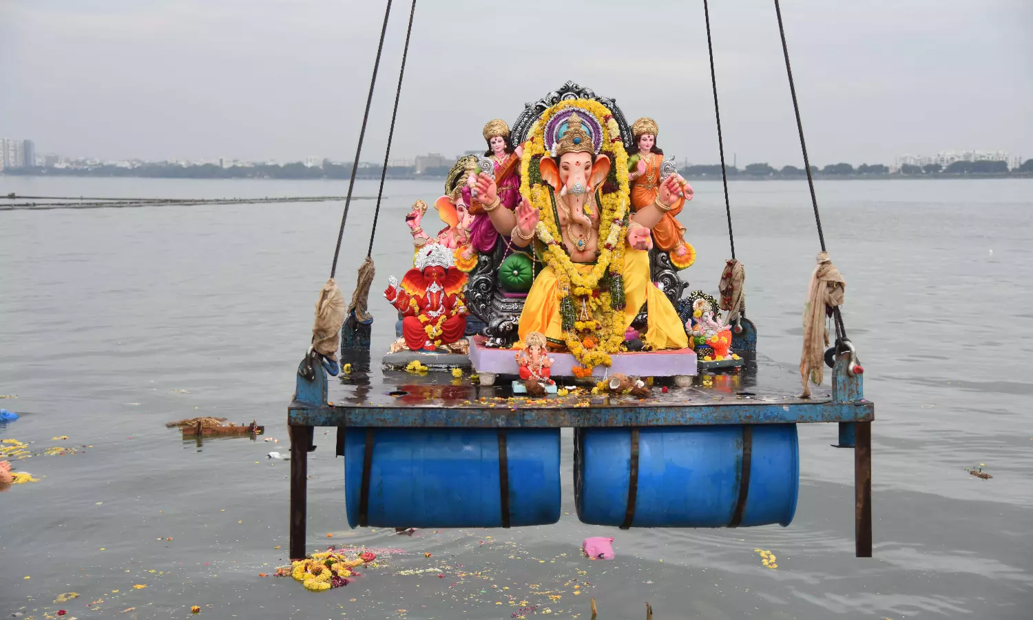 Larger idols were moved using customised vehicles, while civic officials provided cranes at lakes to facilitate the process. Elaborate security and lighting arrangements were made for the smooth conduct of the immersions. Boats, swimmers, and emergency teams were also deployed at major lakes for safety.