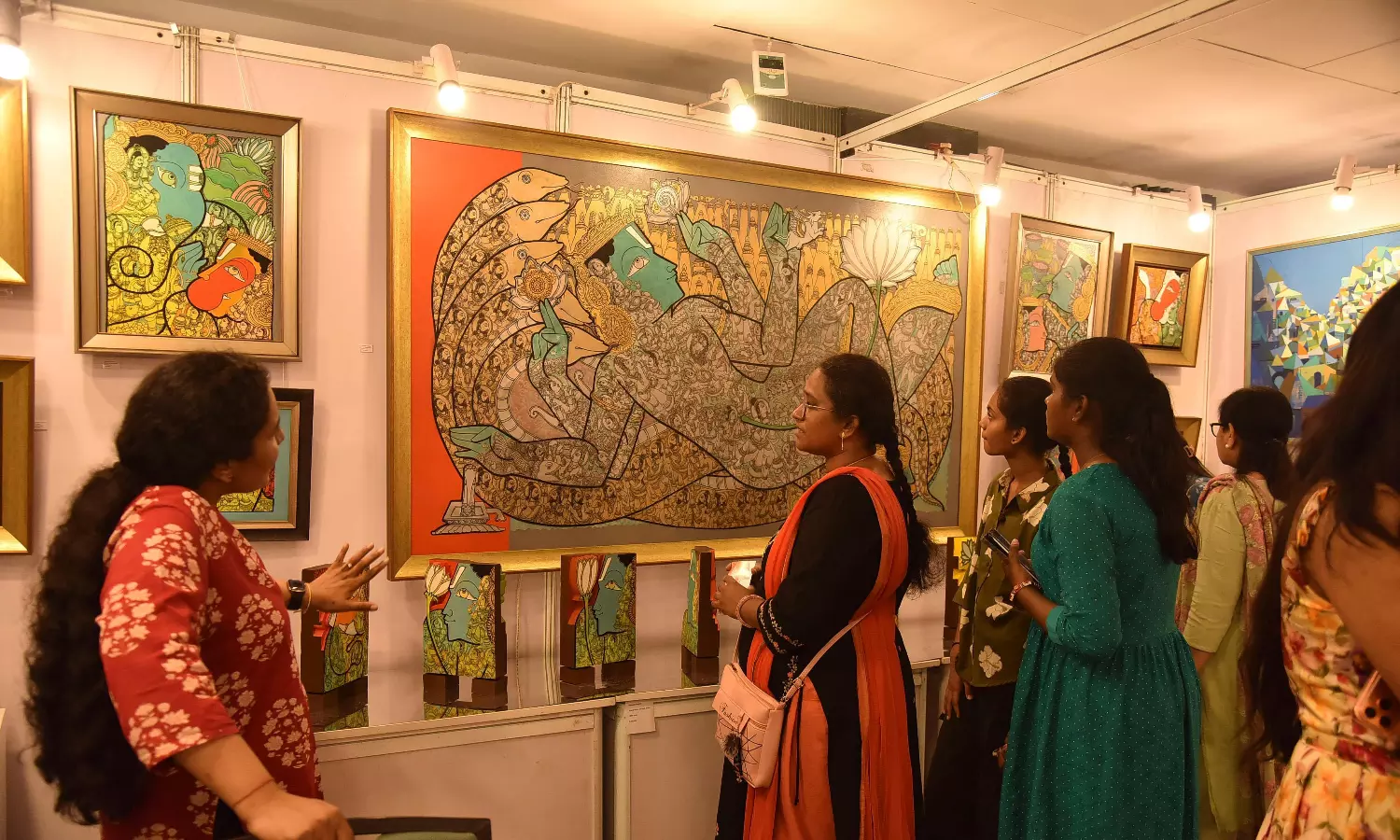 In contrast, Sanuj Birla’s pop and postmodern pieces critique consumerism, offering a contemporary visual language. Visitors moved across two floors of galleries and collectives. “The collection and displays are excellent. It’s worth buying,” said Hyderabad-based visitor S.M. Jain, describing an interactive piece that shifted from butterflies to an autumn tree depending on perspective.