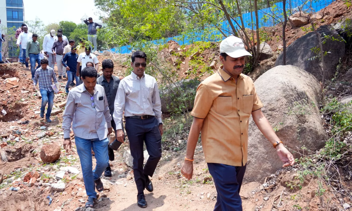 He advised officials to put up warning boards at the land stating that the land belongs to the government. Anudeep Durishetty instructed the revenue department officials to register criminal cases against anyone, who tries to encroach the government land and instructed the officials to complete the fencing work at the earliest.