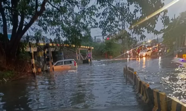 Hyderabad: A cloudburst struck West Hyderabad in the early hours of Thursday, unleashing torrential rainfall. The intense downpour, which occurred between 3 AM and 4 AM, led to record-breaking rainfall in several areas, with the University of Hyderabad recording an unprecedented 148.5 mm in just one hour, according to local weather reports.