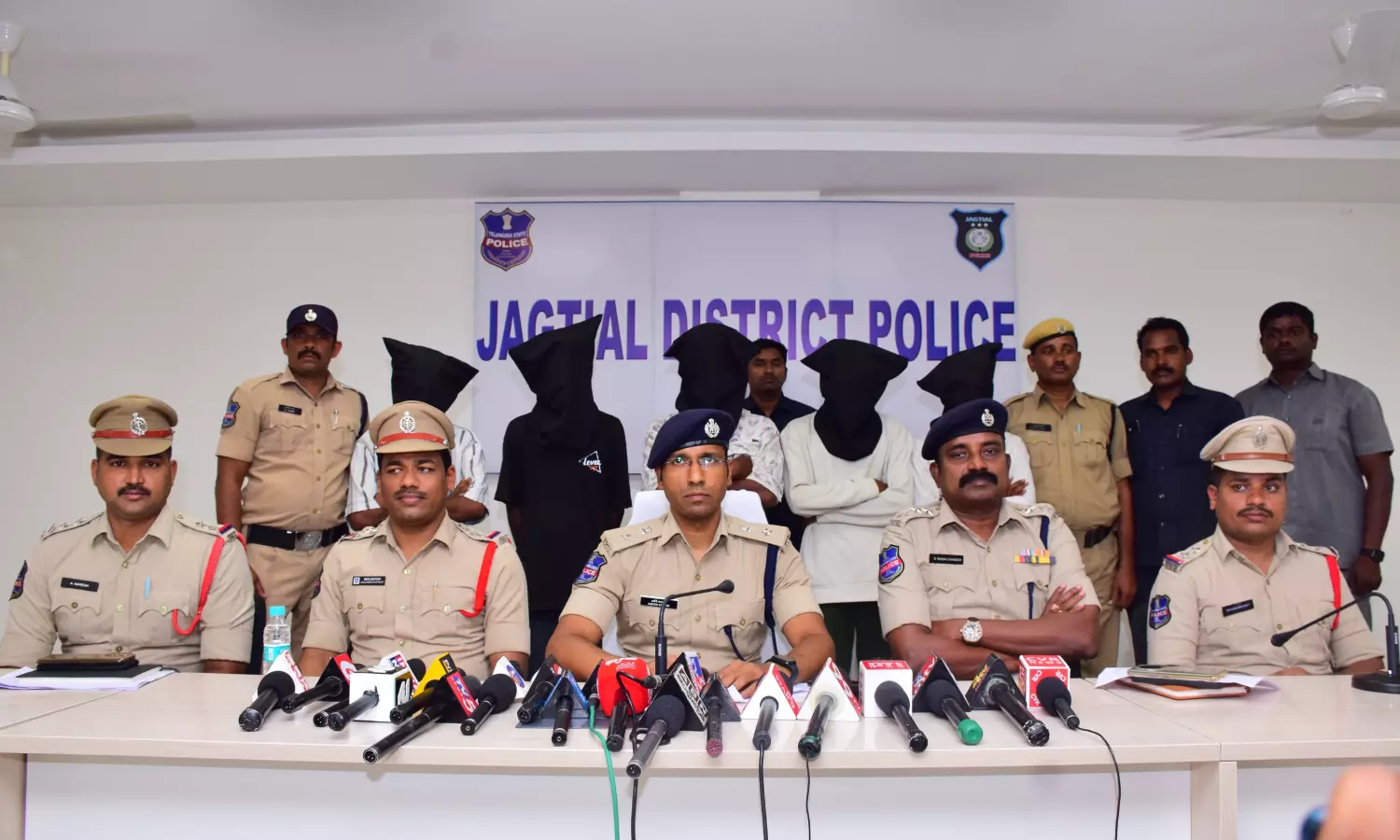 Sharing the details with the media, superintendent of police Ashok Kumar said the five accused persons were identified as A. Sai Kumar, 23, T. Sai Teja, 20, and K. Arun, 19, all are natives of East Godavari district of Andhra Pradesh and A. Saketh, 24, and P. Raj Kumar, 24, natives of Jagtial district.