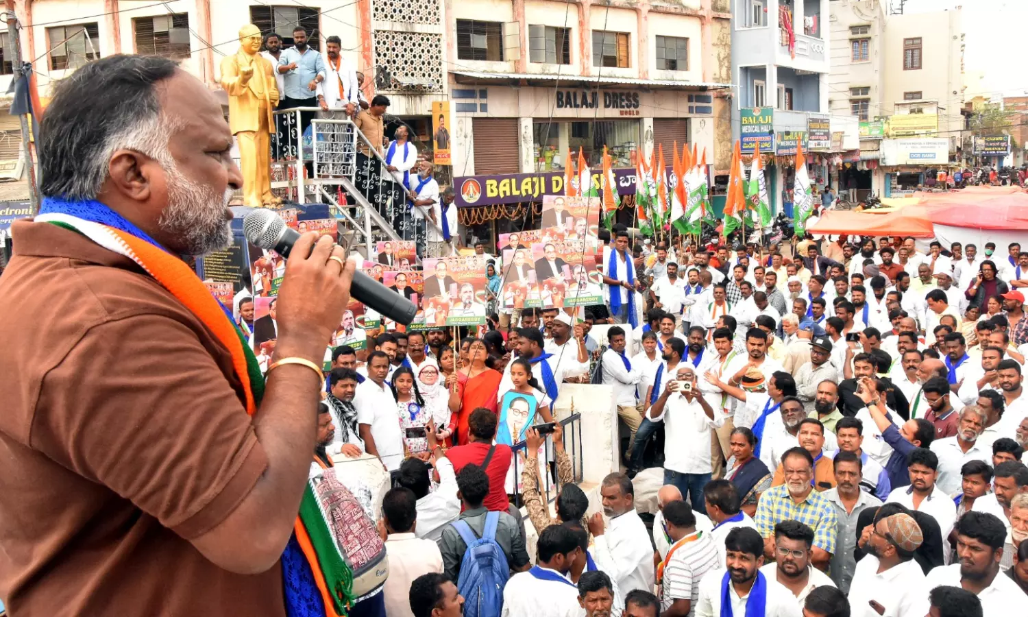 The Congress rally, led by Jagga Reddy and Telangana State Industrial Infrastructure Corporation chairperson Nirmala Jagga Reddy, included garlanding Ambedkar’s statue and marching through the town’s main roads.