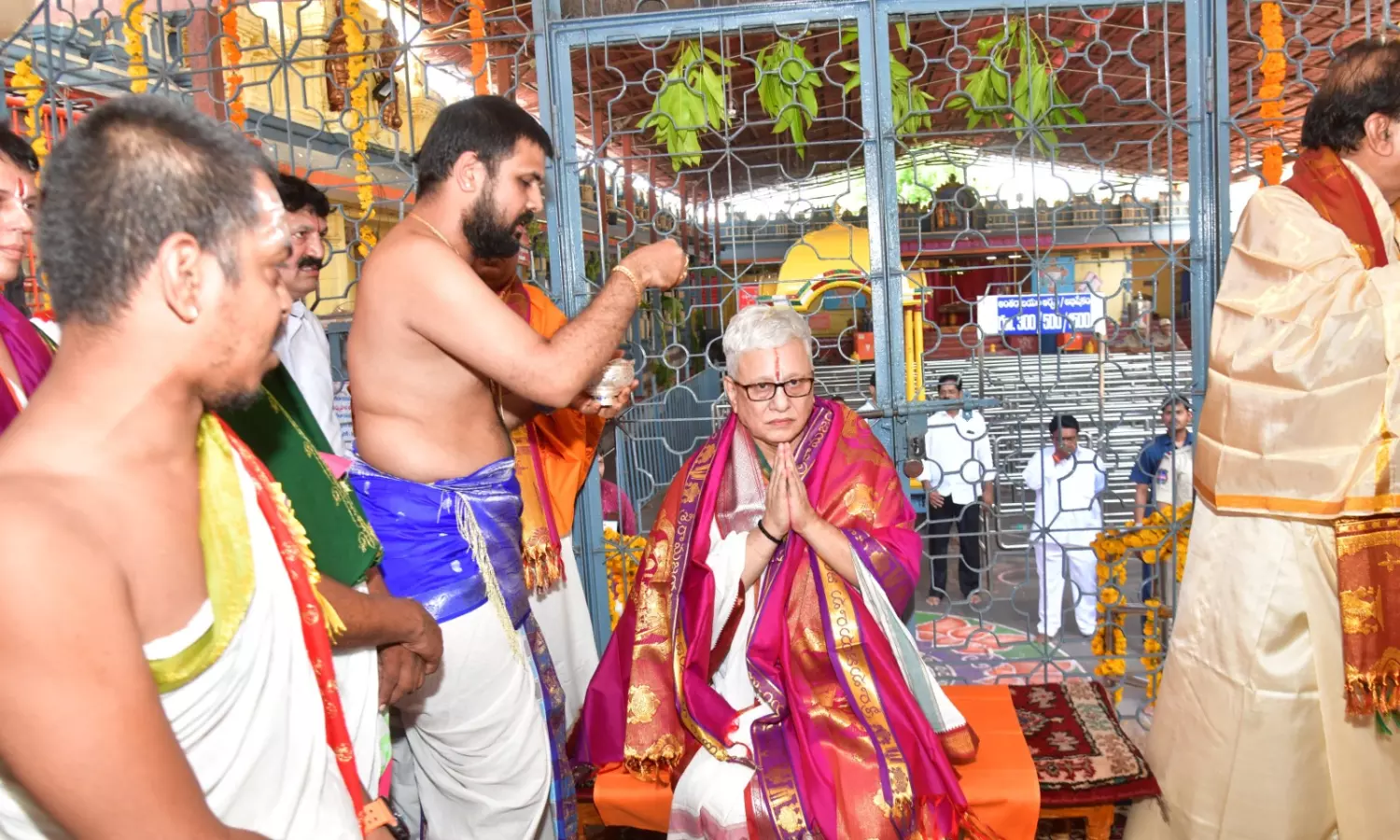 Agriculture Minister Tummala Nageswararao and other senior temple authorities accompanied the Governor during the visit.