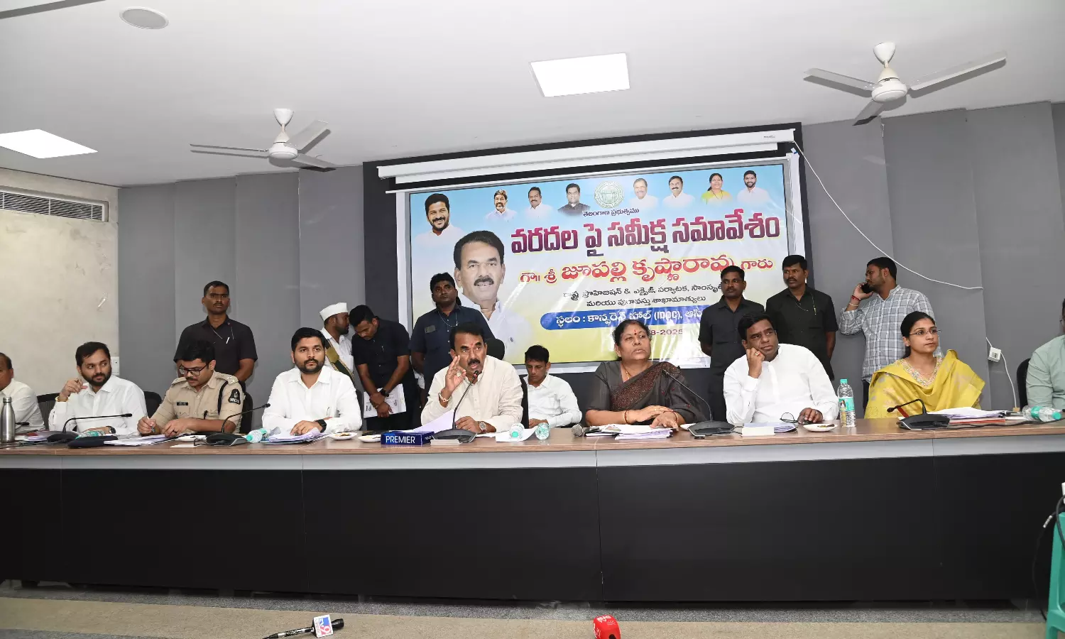 Adilabad:Tourism minister Jupally Krishna Rao said heavy rains and floods have caused widespread damage in Komaram Bheem Asifabad district, affecting standing crops, culverts, and road connectivity. He directed officials to implement immediate relief measures and prepare detailed reports on the damages.