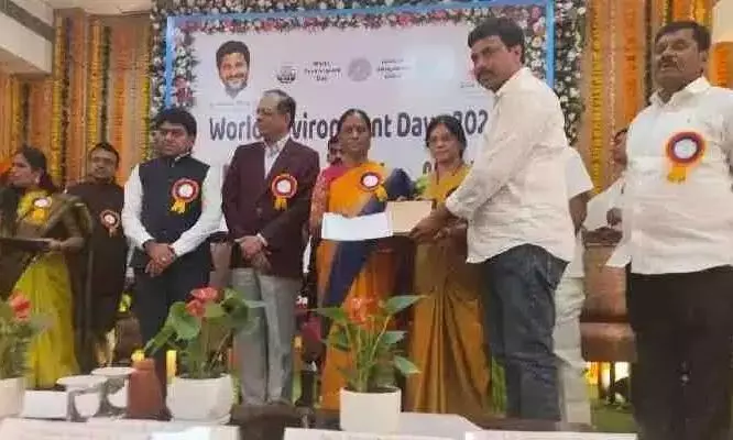 KARIMNAGAR: The Chamanpalli Village Panchayat of the Karimnagar Rural mandal won the State Best Panchayat Award. The certificate and award were presented to the panchayat secretary Korukanti Mahendar Rao by the environment minister Konda Surekha during a programme held on the occasion of the World Environment Day at the Telangana Pollution Control Board office in Hyderabad on Thursday.