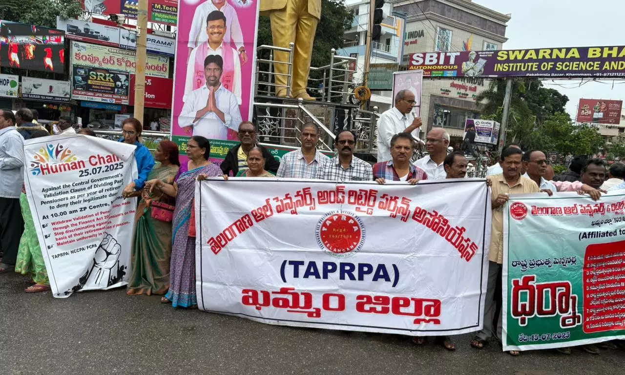 Khammam: Pensioners Protest Finance Act 2025, Demand Equal PRC Benefits