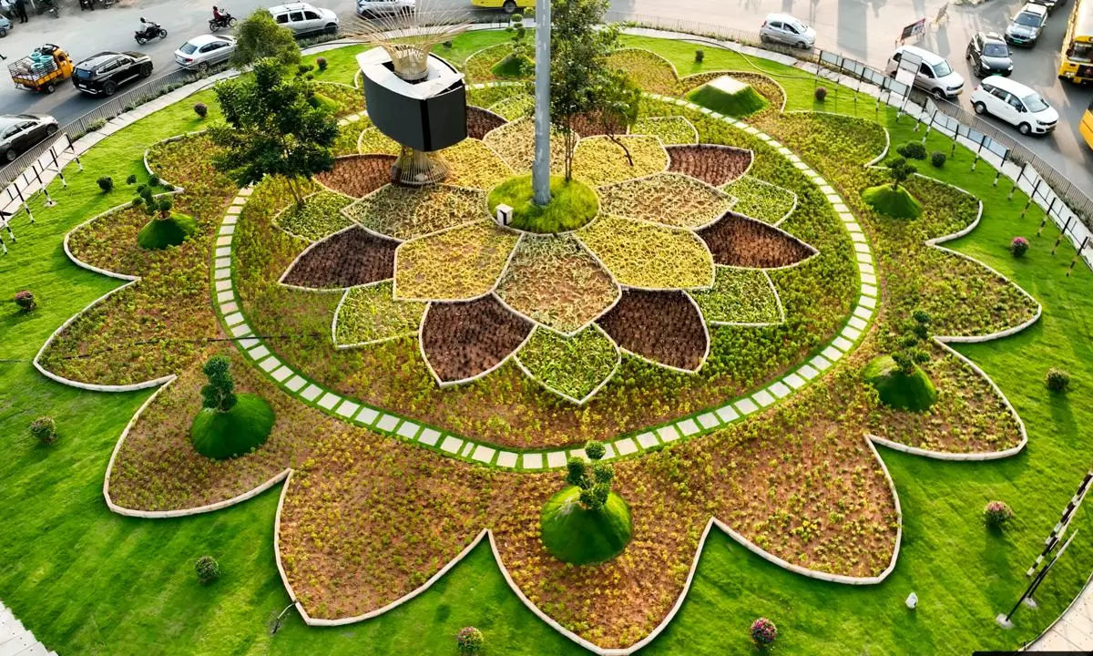 Hyderabad:The HMDA said it had developed a lotus petal-themed traffic island at Kokapet Junction. The island depicts layered foliage, flowering hedges, and ground covers.