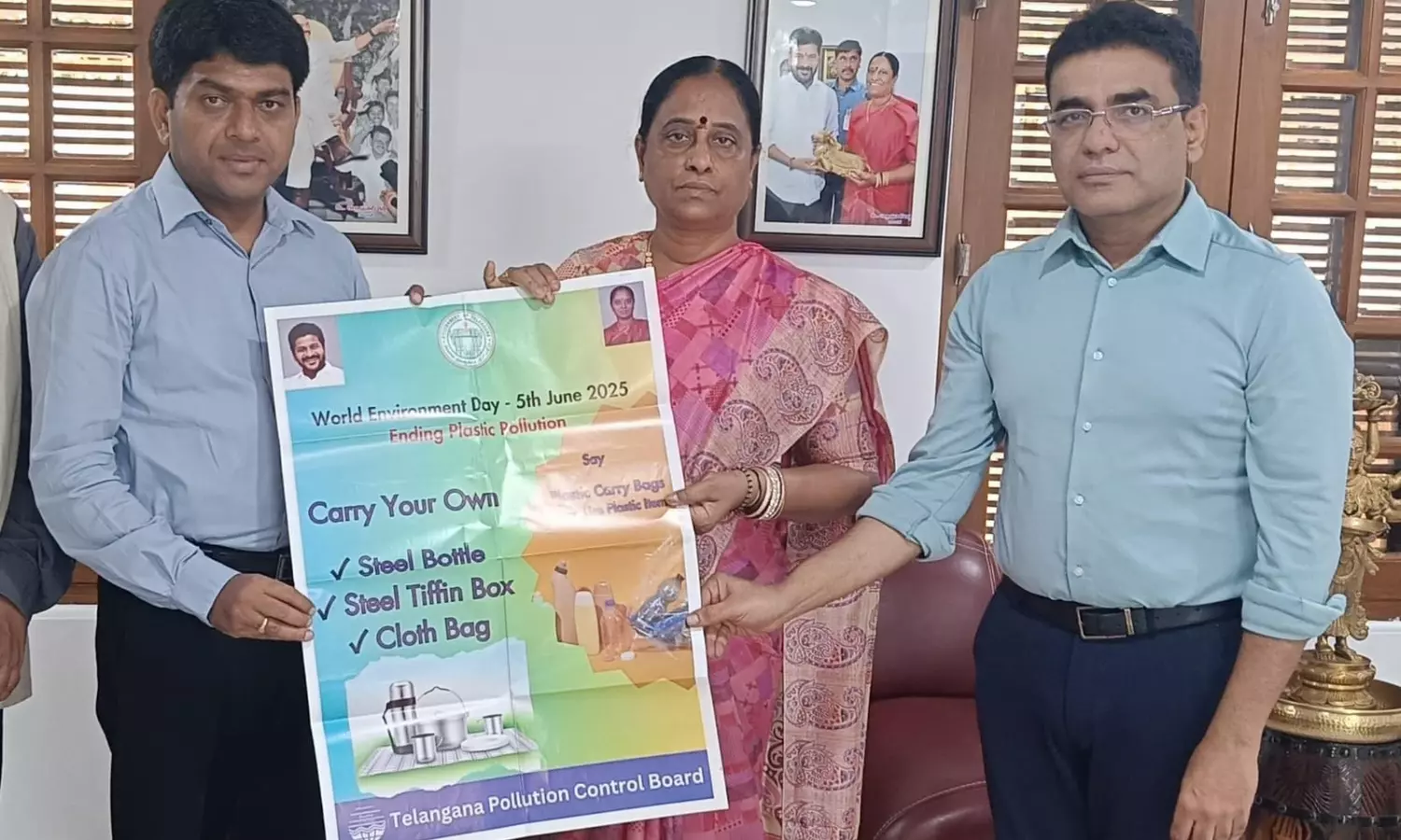 Hyderabad: On the occasion of World Environment Day 2025, Minister for Forest, Environment, and Endowments, Konda Surekha, launched a new awareness campaign led by the Telangana Pollution Control Board (TSPCB) with the theme “Ending Plastic Pollution” on Tuesday.