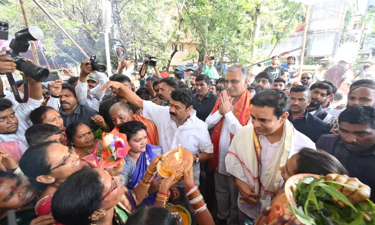 Harish Rao said the festival reflects Telangana's culture. “Irrespective of culture and religion everyone takes part with fervour as it symbolises unity.” Rama Rao said that people would see good days return only after the BRS came back to power. The Jubilee Hills Assembly bypoll was a precursor for this, he said.