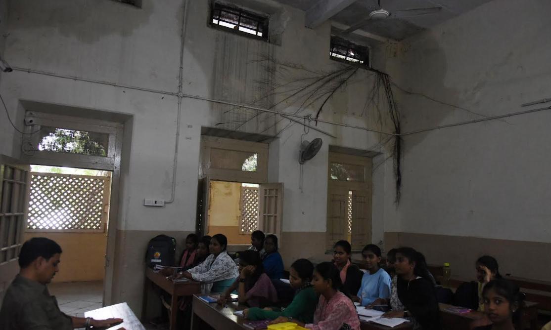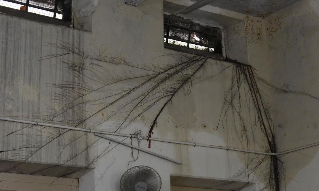 With heavy rains lashing the city over the past several days, portions of the ceiling have started peeling off. Plaster has fallen dangerously close to students in classrooms and corridors. The building’s structural stability is under threat as rusted beams are clearly visible in many classrooms and other areas.