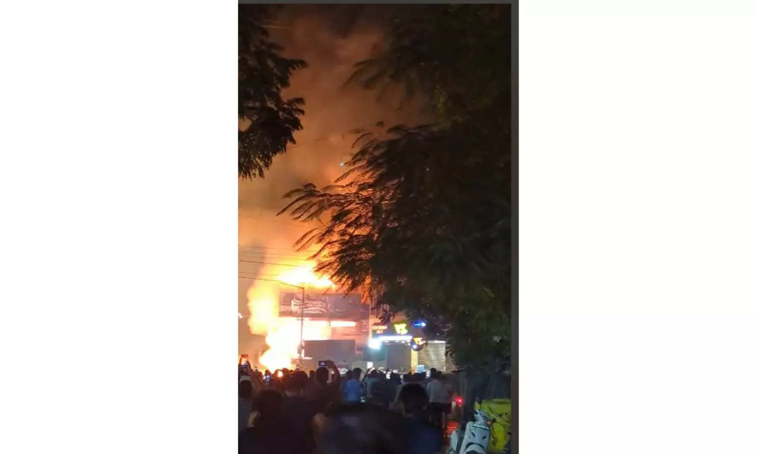 Hyderabad: A massive fire broke out at a firecrackers shop, that was allegedly being run without permits, in Pragati Maha Vidyalaya, Hanuman Tekdi, around 9 pm on Sunday. The fire spread to an adjacent tiffin centre that was gutted.