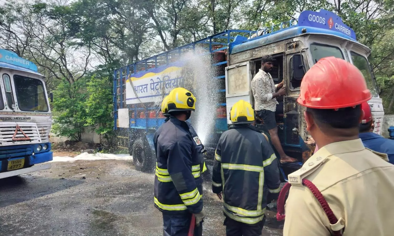 According to Cherlapally SFO K. Chandrashekhar, an empty tanker of Bharat Petroleum caught fire while it was carrying out a trial run after some repairs. The fire was attributed to an electrical defect. As soon as the driver noticed the fire, he parked the vehicle aside and fled. “According to what locals said, the fire was erupting from the vehicle’s bonnet,” the SFO said.