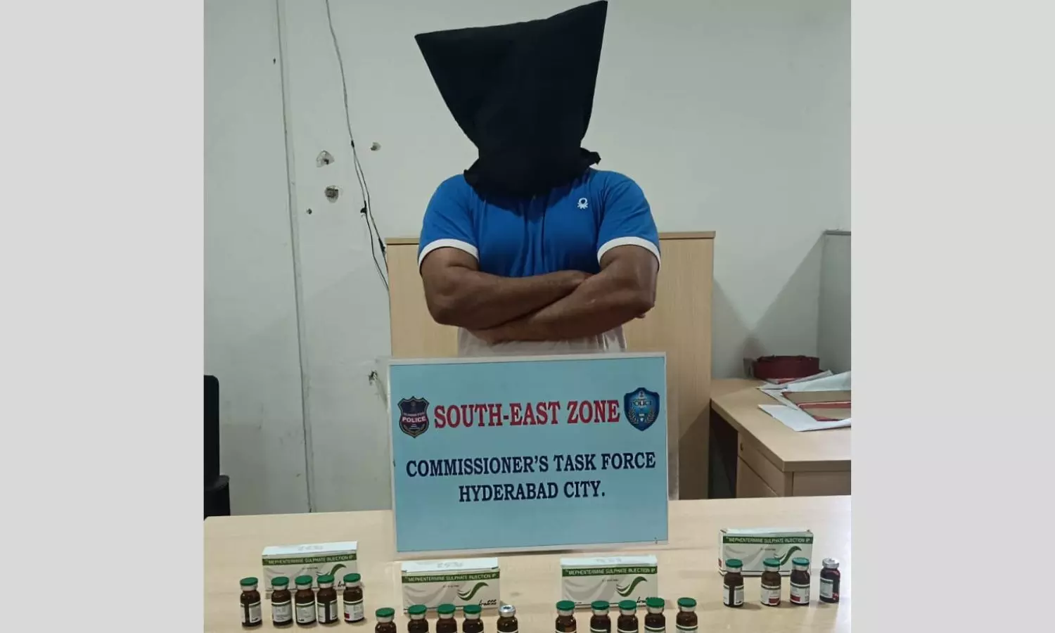 Task Force Additional Deputy Commissioner of Police, Ande Srinivasa Rao, said the police nabbed Ansari for illegally possessing mephentermine sulphate injections while travelling on his two-wheeler. On enquiry, it came to know that he procured injections from Sahendra Prasad of Gurugram in Haryana and sold the same to needy customers at higher prices at Bandlaguda.