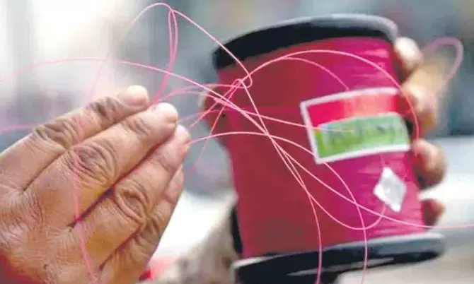 The incident occurred at Fasalwadi in Sangareddy district when Avadhesh Kumar was riding a motorcycle and a Chinese manja string accidentally came in contact with his neck, causing severe injuries and leading to his death on the spot.
