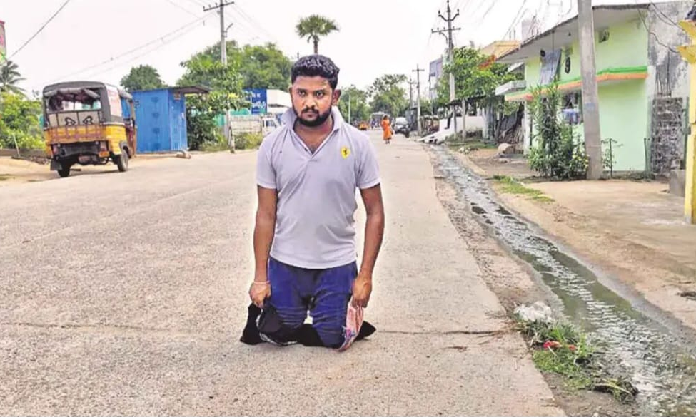 Hyderabad: A 22-year-old person walked on his knees for over 70 kms and reached the popular Sri Mallikarjuna Swamy Temple at Inavolu in Warangal district to offer special prayers for the wellbeing of his brother-in-law Rajanikanth.