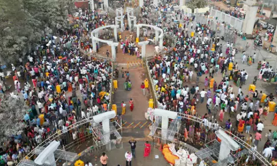 Warangal: Medaram in Mulugu district witnessed a significant surge in footfall on Sunday as devotees arrived in large numbers during the Sankranti holidays.