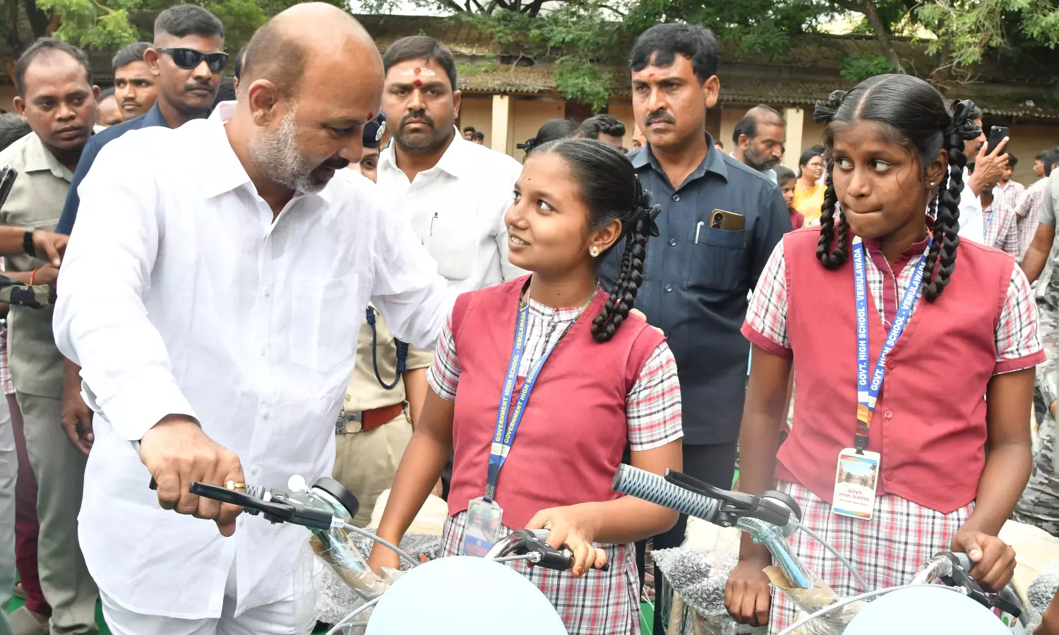 Later, Sanjay distributed bicycles to the 10th class students of government schools as part of the Modi’s Gift’ initiative in Rajanna Sircilla district.