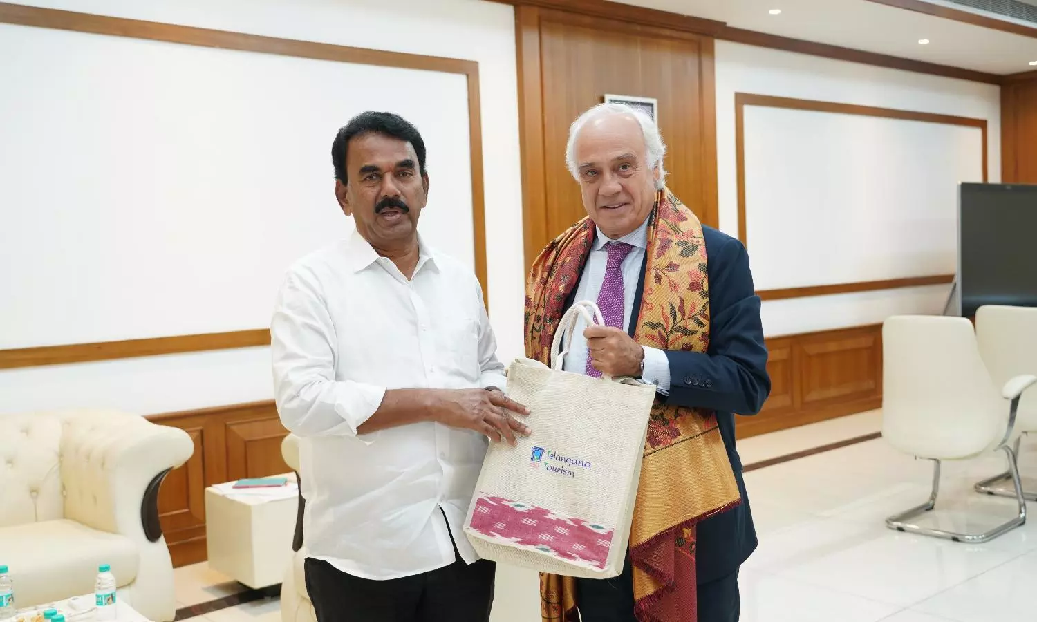 Hyderabad: Tourism minister Jupally Krishna Rao has requested Spain’s ambassador Juan Antonio Marso Pujol to extend support for the state’s tourism sector. He said Telangana was focusing on developing world-class infrastructure to showcase the state’s rich history, culture, and heritage.