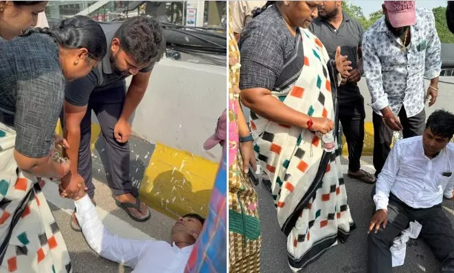 Hyderabad: Minister Seethakka aided a motorist experiencing seizures on the Punjagutta flyover in Hyderabad. Spotting the distressed person, she immediately stopped her vehicle and rushed to assist. She placed keys in his hand to help manage the seizure and ensured he was quickly shifted to a hospital for further treatment.
