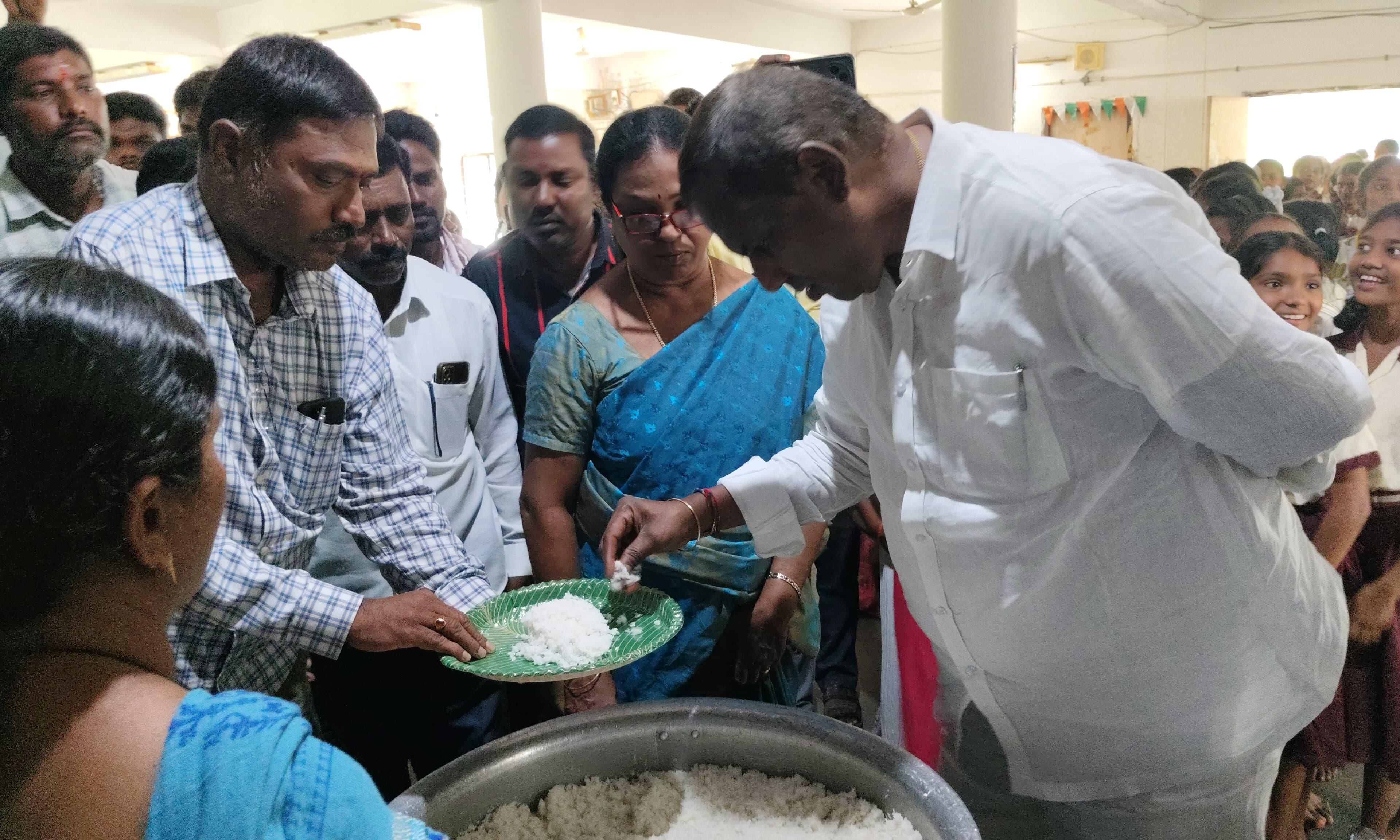 When the school principal informed the minister that they had been receiving poor quality, coarse rice instead of fine rice for cooking over the past 15 days, the minister expressed anger at the civil supplies department officials. He immediately called the district supply officer (DSO) and ordered the replacement of the low-quality rice with fine rice.